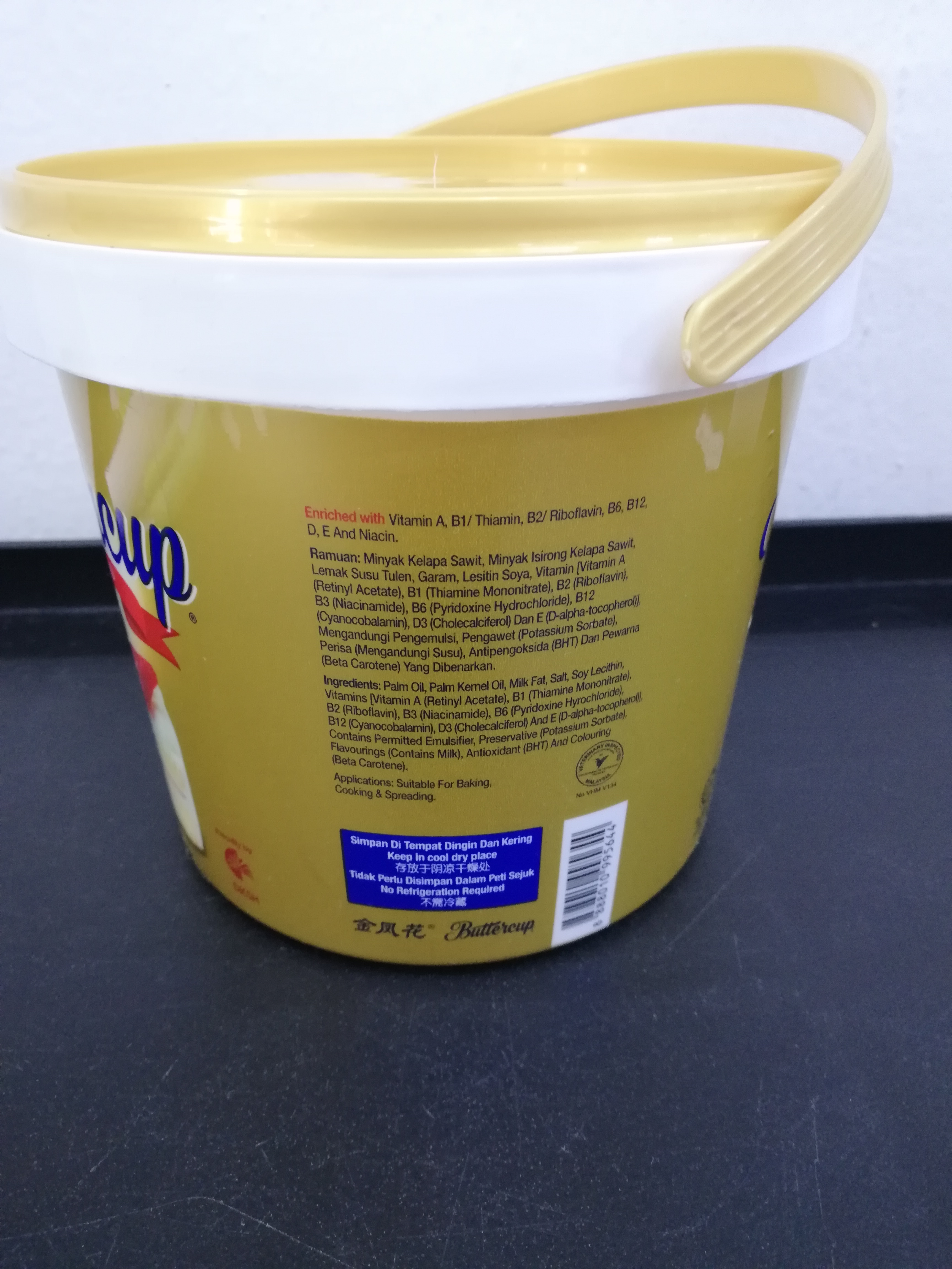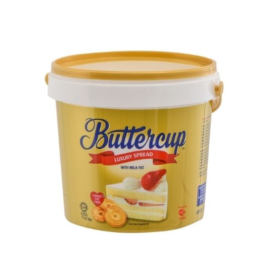 Details: Buttercup Luxury Spread Weight: 1KG Description: Buttercup Luxury Spread is a premium quality margarine made from the finest blend of vegetable oils and milk fat, delivering a rich, buttery aroma and smooth texture. It is perfect for baking, cooking, and spreading on bread, offering consistent results and excellent taste in every use. Features: - Smooth and creamy texture for easy mixing and spreading - Ideal for baking cakes, cookies, pastries, and bread - Adds rich buttery flavour and golden colour to your creations - Made from high-quality vegetable oils and milk fat - Halal certified Storage: Store at room temperature in a cool, dry place. Avoid direct sunlight and heat. Once opened, keep tightly closed to maintain freshness.